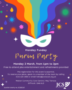 Join us on 2 March for a Purim Party at Jewish Care Scotland!