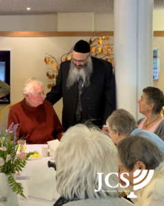 Guests were served chicken soup with egg lokshen before a roast chicken main course followed by cake and fruit salad. Guests were delighted to be joined by JCS Vice Chair Paul Winocour and Rabbi Rubin for the special event.