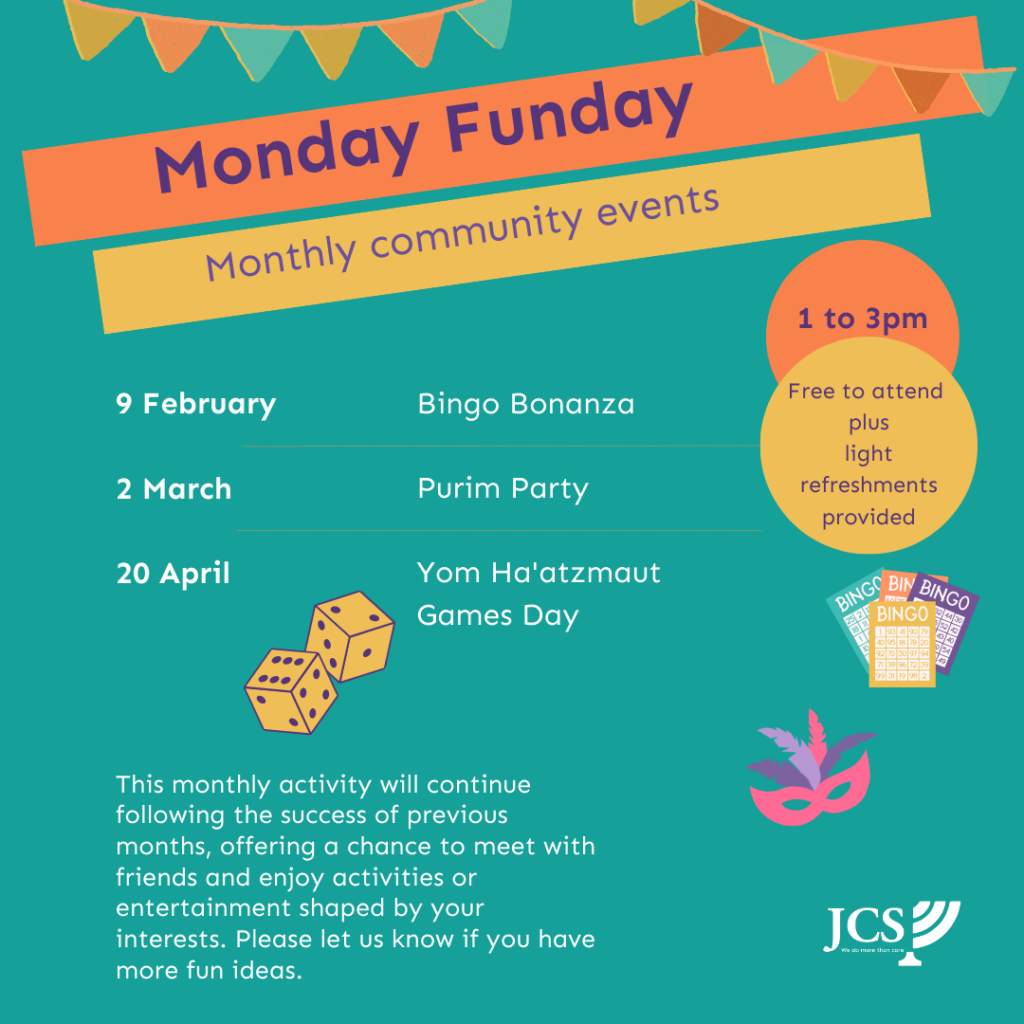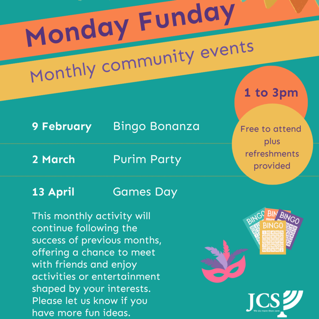 This free monthly activity will continue following the success of previous months, offering a chance to meet with friends and enjoy activities or entertainment shaped by your interests. Monday Funday was developed in response to feedback from people supported by Jewish Care Scotland and aligns with the organisation’s Strategic Plan for 2025 to 2030, with […]